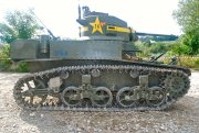 USA, ab 1944. Hergestellt 4'700 Ex., Gewicht 18,4 t. Kanone 75 mm. 2 x V8 Cadillac Ottomotor 2x148 PS, Reichweite 160 km, max. Geschwindigkeit 55 km/h. Heute ist der Chaffee ebenfalls eine Rarität, in Europa sind nur wenige vorhanden. Wir schätzen uns glücklich, am Convoy 2022 diese Seltenheit zeigen zu können.