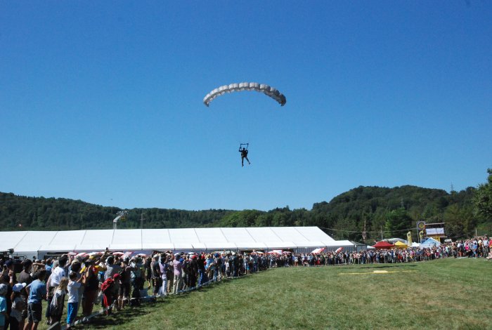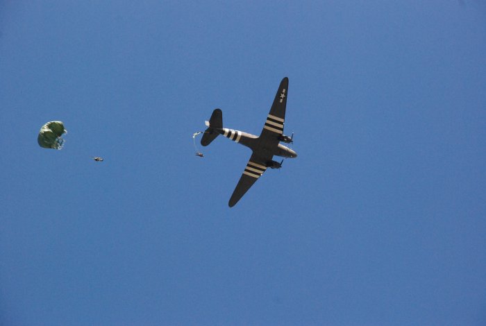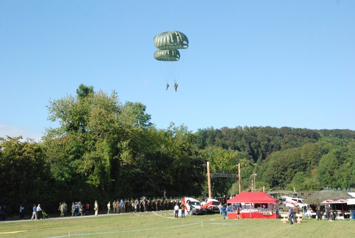 Zu den Glanzpunkten des diesjährigen Convoy to Remember zählten in der Luft zweifellos die Vorführungen der Patrouille Suisse sowie der in der Schweiz erstmals gezeigte 1:1-Betrieb eines Feldflugplatzes des US Army Air Corps. Die Starts und Landungen der Stinson L-5 auf dem improvisierten Airfield begeisterten die vielen Zuschauer. Absprünge von Fallschirmjägern in der Originalausrüstung der 101. US-Luftlandedivsion aus einer C-47 Dakota, die in der Normandie 1944 im Einsatz war, ergänzten die Vorführungen zur Invasion 1944. Das moderne Gegenstück bildeten die Fernspäher der Schweizer Armee mit ihren hochpräzisen Landungen mitten im Festgelände.